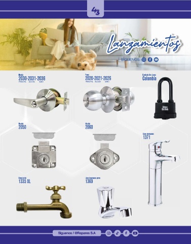 Manija Pomo Candado Aro Largo 2030-2031-2036 2020-2021-2026 Colombia PRINCIPAL ALCOBA BAÑO PRINCIPAL ALCOBA BAÑO Mueble Mueble 2050 2060 Llave lavamanos 1371 Llave jardín Llave lavamanos pomo 1335 XL 1369 T7 /